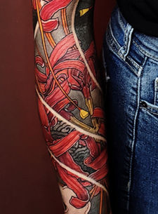 Reading your ideas, story, and meanings, then using them as a foundation to create a design is one of my favorite parts of Tattooing. Still, it is also one of the most time-consuming daily activities. This kind of creative process is also fluid. Most of the time, the design changes during the tattoo process since the more I relate to my canvas, sharing time, hours, chats, etc., the more I can deliver in the creative part of it.